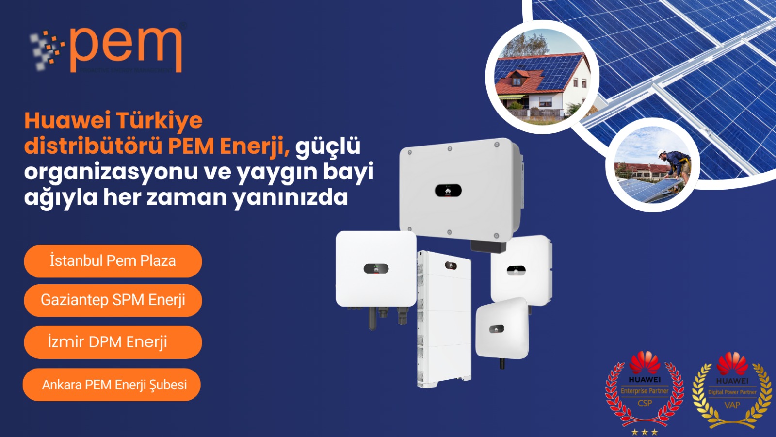 Huawei Türkiye distribütörlüğümüzün sağladığı global güç; PEM Enerji’nin yerel organizasyonu, uzman kadrosu ve yaygın bayi ağıyla birleşerek, iş ortaklarımıza sürdürülebilir ve güvenilir bir iş birliği modeli sunuyoruz.